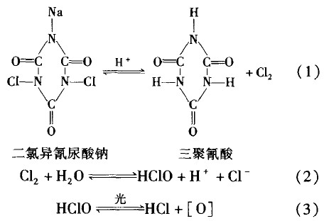 DCCA又名優(yōu)氯凈,學(xué)名為二氯異氰尿酸鈉。在酸性條件下DCCA反應(yīng)機(jī)理為:
