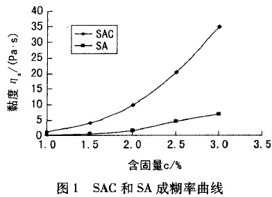 圖1所示為SAC和海藻酸鈉SA的成糊率曲線。