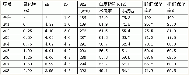 2.氯化鎂是戊二醛和纖維素交聯(lián)反應(yīng)的較理想的催化劑之一,在實驗條件下,0.75%(owb)的氯化鎂用量可獲得較佳的整理效果。