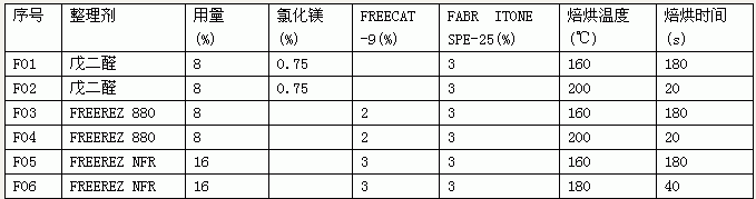 注: (1)FREECAT9是廠家提供的專用催化劑,F(xiàn)ABRITONE SPE-25為柔軟劑;(2)整理劑用量選用廠家提供的參考條件。