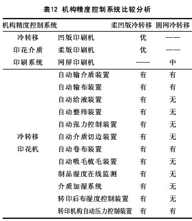 由表12可知,冷轉(zhuǎn)移印花介質(zhì)印刷系統(tǒng),圓網(wǎng)冷轉(zhuǎn)移的機(jī)構(gòu)精度差于凹、柔版印刷機(jī)。冷轉(zhuǎn)移印花機(jī)由于兩種不同結(jié)構(gòu)模式,因此可比性就難說了。