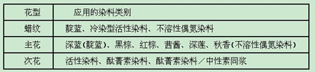 表6—18印制不同花型所采用的染料